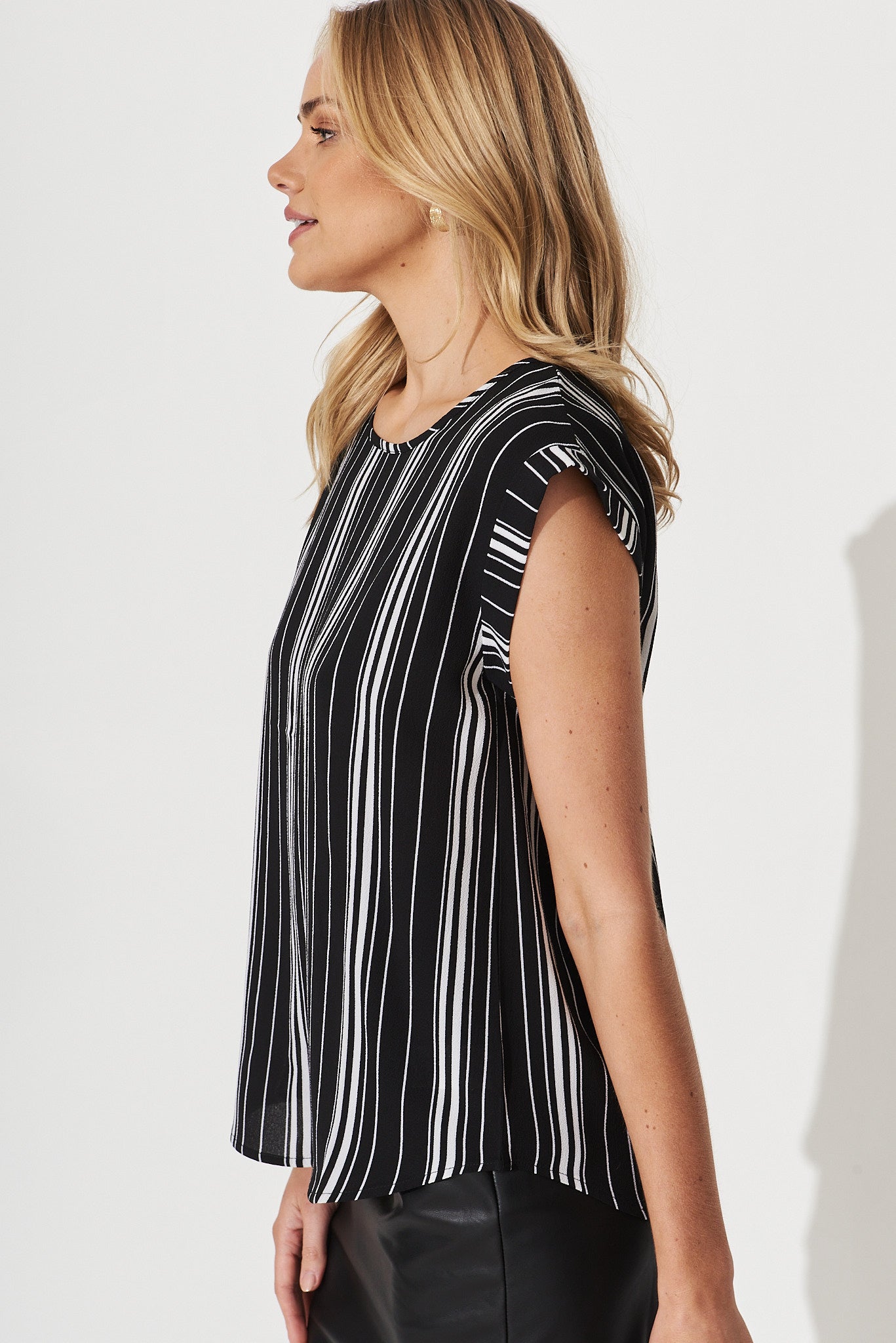 Rejina Top In Black With White Stripe Crepe