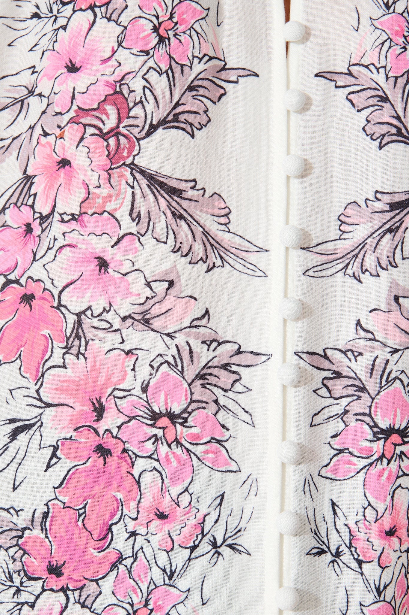 Reyna Top in White with Pink Floral Placement Linen Blend