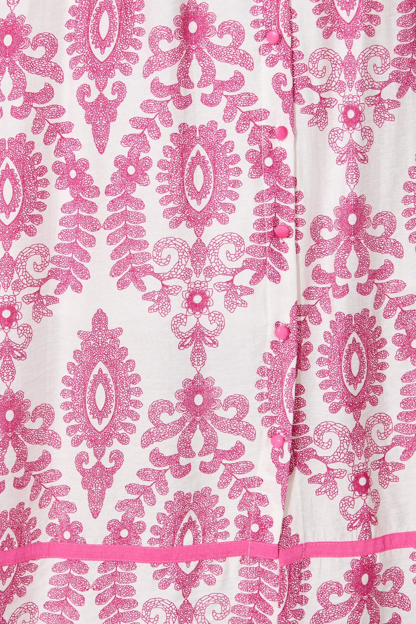 Rosella Midi Shirt Dress in White with Pink Floral Print