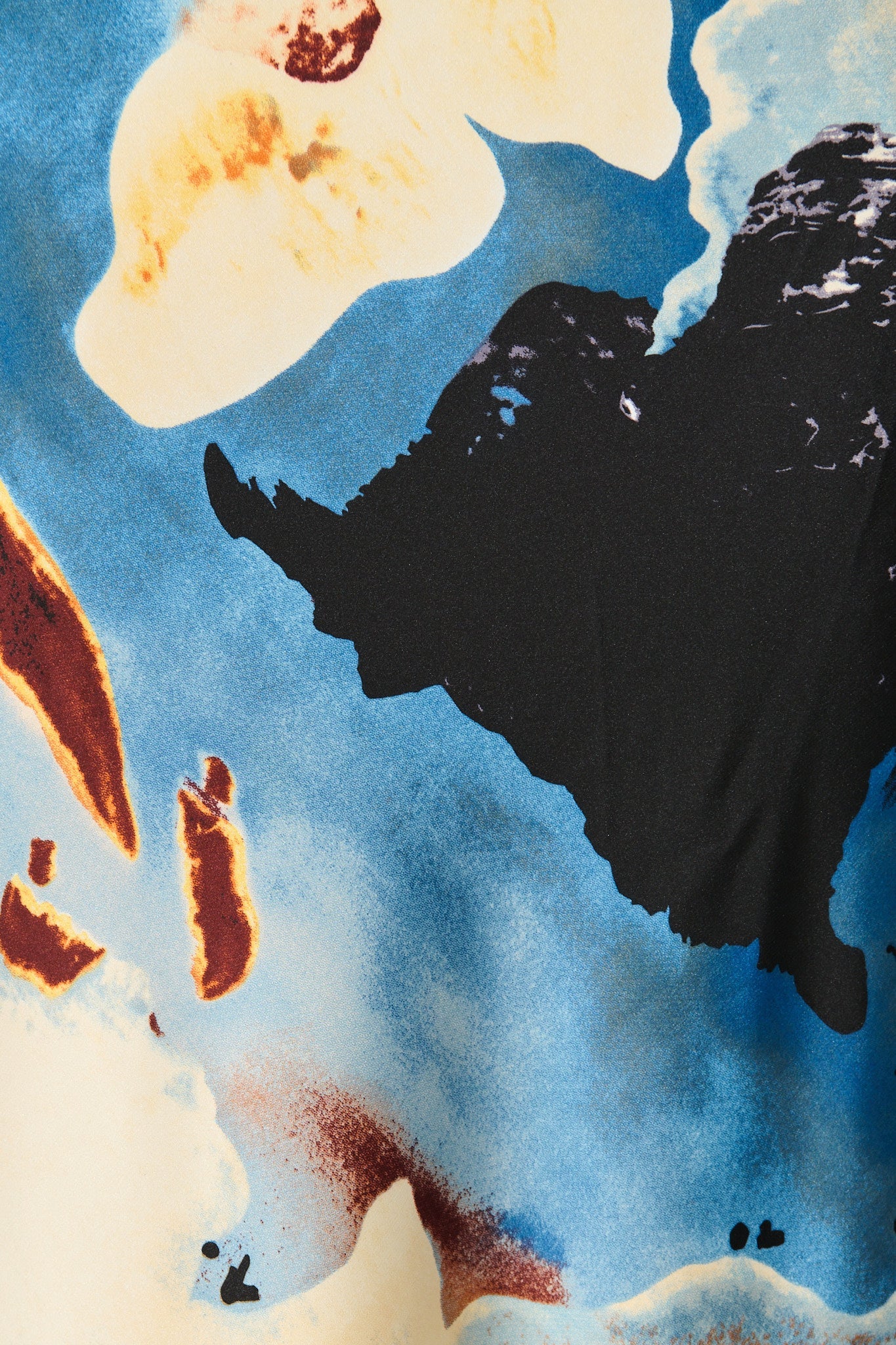 Sarita Maxi Off Shoulder Dress in Blue Watercolour Satin