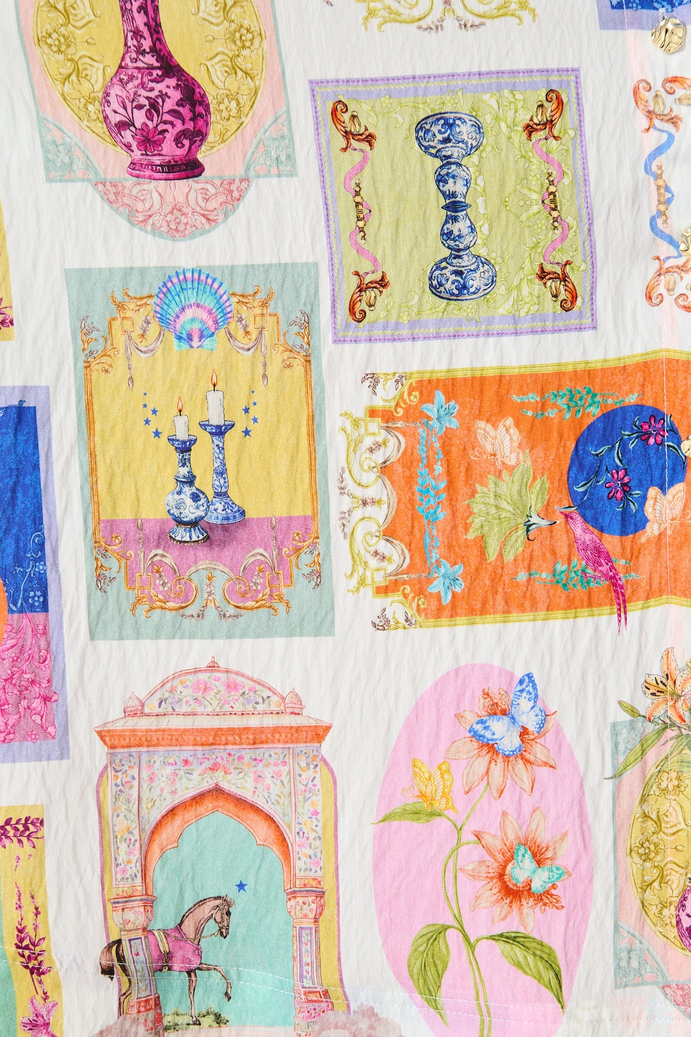 Serenity Midi Shirt Dress in Cream with Multi Conversational Print