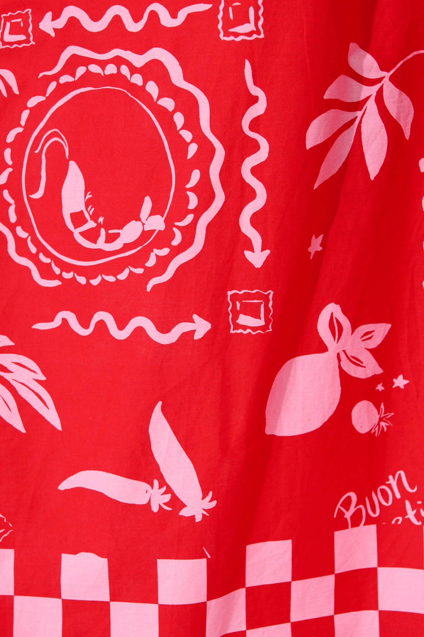Yazmin Midi Shirt Dress in Red with Pink Border Cotton